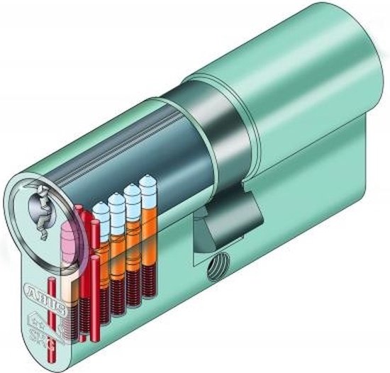 Totaal 8 hardstalen stiften per zijde beschermen de cilinder tegen uitboren (de rode stiften op de 2e foto). De speciale stiftvormen van de overige stiften bieden extra weerstand tegen diverse vormen van manipulatie.