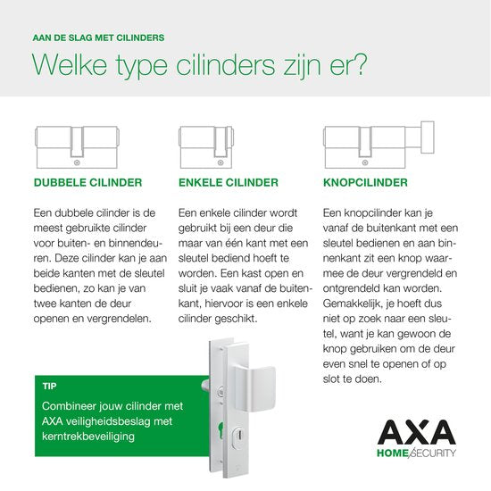 AXA Enkel Cilinderslot - 10/30 mm - Security+ - Veiligheidscilinder Vernikkeld - incl. 3 sleutels