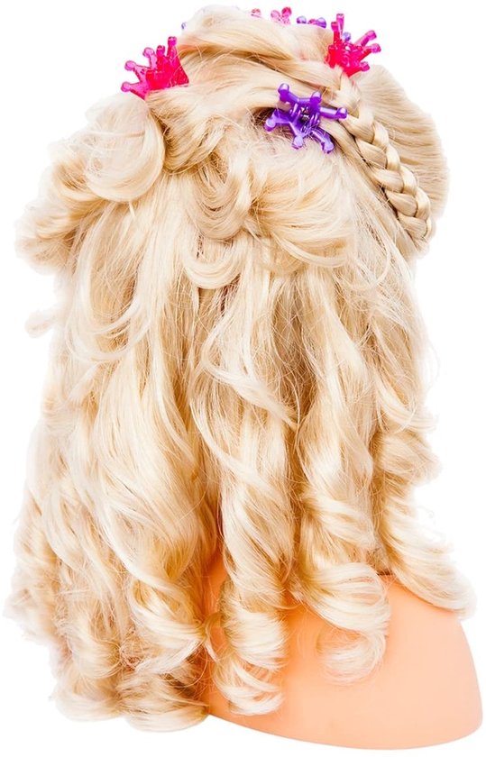 Met het Super Model kaphoofd voor make-up en hairstyling, kun je haast elk idee voor een bepaalde stijl uitproberen. Je kunt een ontelbaar aantal verschillende kapsels uitproberen, waarvoor allerlei handige kappersbenodigdheden worden meegeleverd (borstel, kam, klemmen en krulspelden). Enkele styling-ideeën staan er ook al op de showbox. Natuurlijk mag voor de echte glamour een make-upset niet ontbreken, en die wordt dan ook meegeleverd. Met haar mooie gezicht en het blond haar is het een echte schoonheid. Verder bevat de set nog een stel stickers. Wordt geleverd in een mooie showbox.