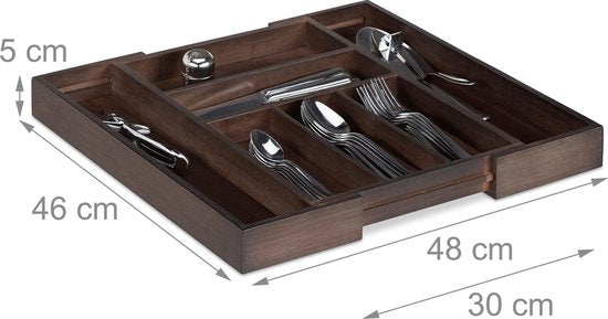 bestekbak - uitschuifbaar - 30 - 48 cm breed - 5-7 vakken - bamboe - 30 - 48 cm breed - 5-7 vakken - bamboe