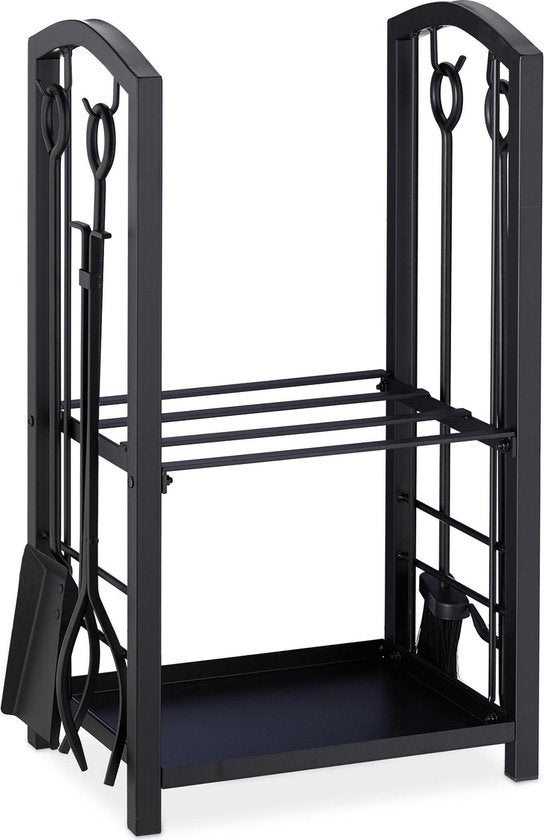 Aan koude dagen is er niets fijner als lekker van een brandende open haard te genieten. Sla het brandhout in de buurt van de haard of kachel op, om elk moment een nieuwe houtblok erop te leggen. Met de tang en pook kan ervoor gezorgd worden dat het vuur zo lang als mogelijk blijft branden. Dankzij de haardschep en bezem kan vervolgens de open haard eenvoudig schoongemaakt worden. Aan het zwarte brandhoutrek opgehangen is is het open haard gereedschap altijd grijpbaar en netjes opgeborgen.