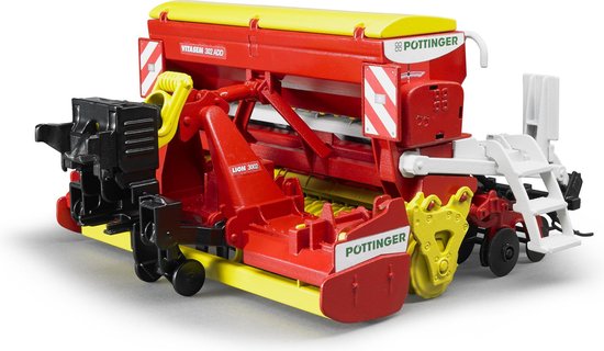 Met de Pöttinger Vitasem 302ADD is de zaaimachine die je nodig hebt om je boerderij compleet te maken. Na het voor bereiden van de akker met de roterende eg maakt de zaaimachine van Pöttinger het af. De zaaimachine van Bruder functioneerd volledig. Zo heeft hij een container voor de zaden die op de akker komen wanneer de tractor begint te rijden. De machine is te koppelen aan elke tractor van Bruder. Door het gebruik van duurzaam plastic is het mogelijk om zowel binnen als buiten te spelen met de zaaimachine.Kenmerken Pöttinger Vitasem 302ADD zaaimachine van Bruder