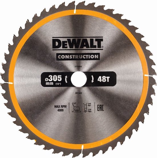 DeWALT Cirkelzaagblad voor Hout | Construction | Ø 305mm Asgat 30mm 48T - DT1959-QZ