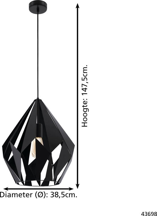volledig zwart en trendy ontwerp, dat is hanglamp Carlton 5 van EGLO. Dit pareltje weet aan elk plafond de show te stelen. Deze lamp is ideaal om jouw interieur een vintage en industrieel tintje te geven. Hanglamp Carlton 5 is door zijn zwarte kleur eenvoudig toepasbaar in ieder interieur. De hoogte van de lamp kun je zelf bepalen tot maximaal 147,5 cm. Je past eenvoudig de hoogte van de draden aan voor je Carlton 5 aan het plafond hangt.