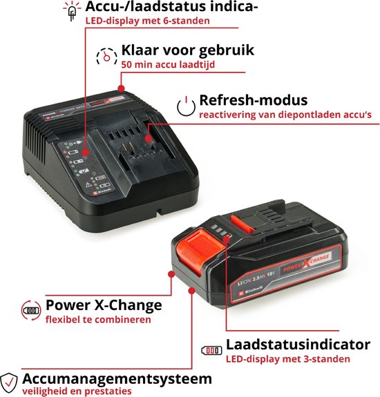 Einhell 18 V/2.5 Ah Power X-Change starter kit - 1x 2.5 Ah Accu en snellader - universeel voor alle Power X-Change machines