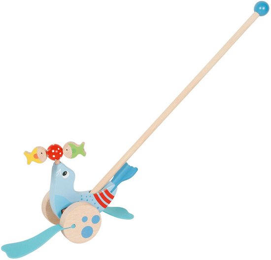 Leren lopen is dubbel zo leuk met een houten duwspeeltje. De schattige zeehond balanceert niet alleen een bal, maar ook twee vissen. Deze beginnen te draaien zodra je begint te duwen. Dit klassieke houten speelgoed begeleidt uw kind bij zijn ontdekking van de wereld en stimuleert de beweging. Goki staat voor verantwoord houten speelgoed van hoge kwaliteit. Ze zijn liefdevol ontworpen en bieden kindvriendelijke speelwaarde voor kinderen vanaf één jaar. Kenmerken•Aanbevolen leeftijd: 18m•Materiaal: hout•Afmeting: 19 cm