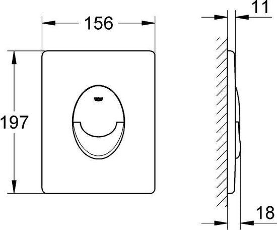 GROHE Skate Air bedieningsplaat is geschikt voor verticale montage en heeft een formaat van 156 x 197 mm.