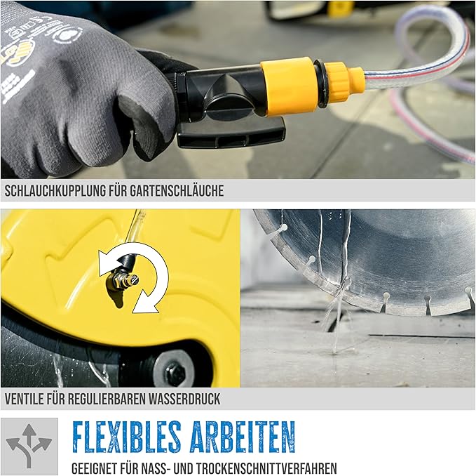 ✔ Geschikt voor nat en droog zagen – met wateraansluiting en regelbare druk