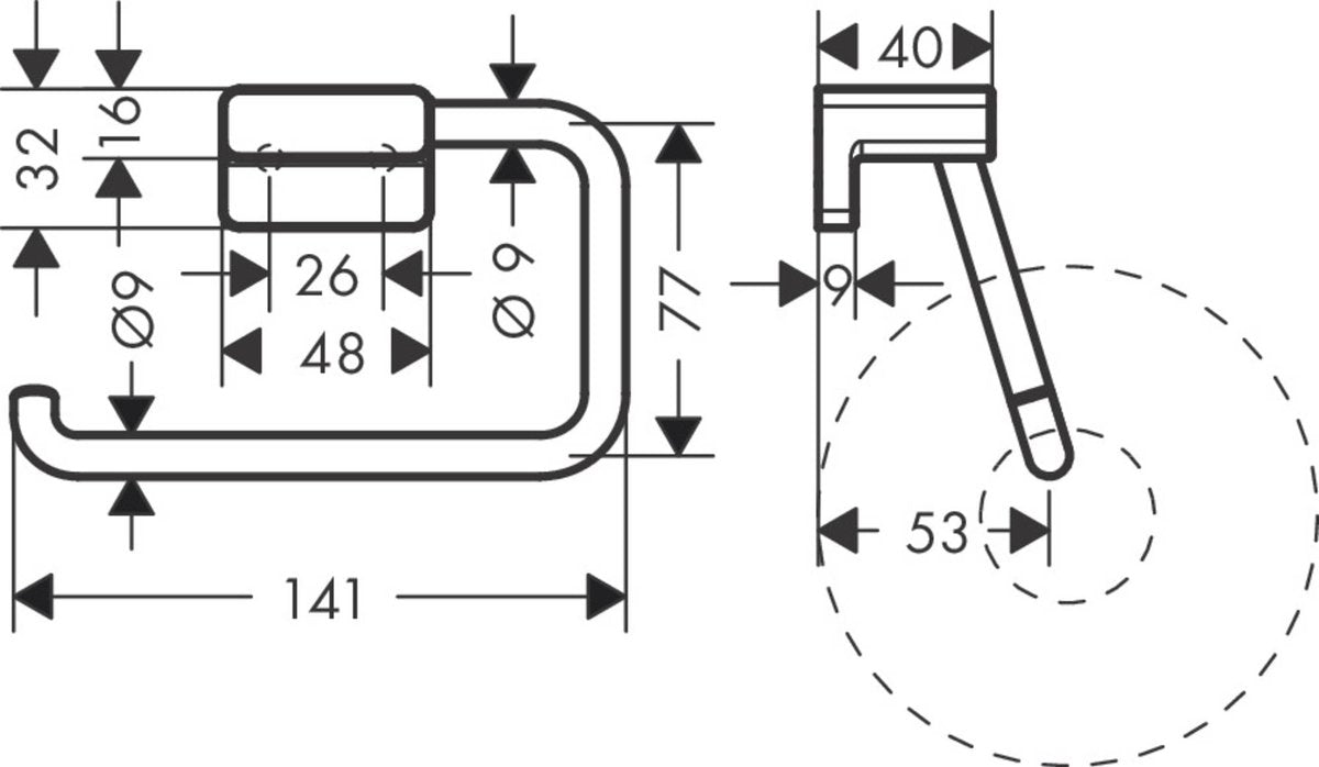 De rolhouder wordt met twee schroeven veilig op de wand bevestigd. De gatafstand is 26 mm.