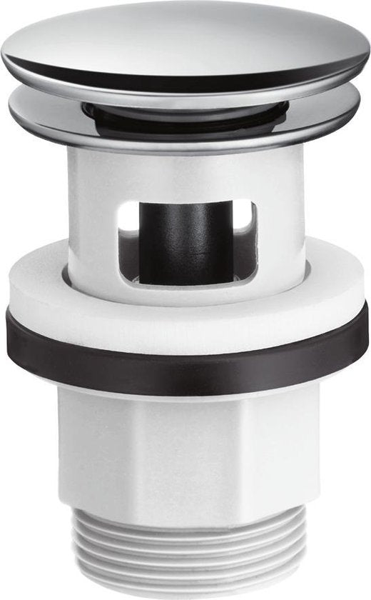 De afvoerplug Push Open in de kleur chroom kun je gebruiken voor wastafels met een overloop. Je bedient de afvoer door middel van een drukstop.