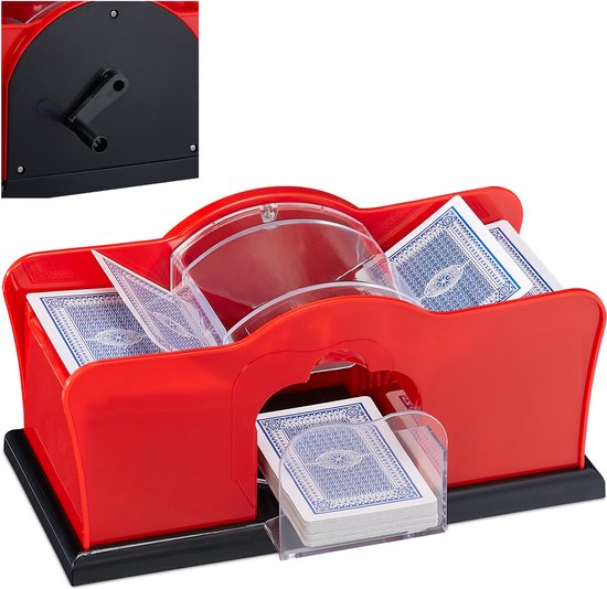 Kaarten schudden gemakkelijk gemaakt! Met de handmatige schudmachine schud je de kaarten bij de volgende spelavond binnen een handomdraai. Hiervoor leg je de decks gewoon in het vakje en draai je aan de zwengel - de kaarten belanden goed geschud in het uitgavevakje. Vals spelen is hierdoor in de toekomst niet meer mogelijk en het langdurige schudden per hand is verleden tijd. De kaartenschudmachine is geschikt voor standaard speelkaarten zoals poker, pesten en meer.