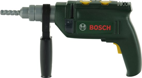 De batterij-aangedreven Bosch-boormachine heeft het allemaal! Hij lijkt sterk op zijn grote zus en is uitgerust met een geluidsmodule, zodat hij ook zo klinkt. Wanneer de boor wordt ingedrukt, hoor je een boorgeluid dat samengaat met een vonk. Het is erg cool, maar totaal ongevaarlijk aangezien het een lichteffect is. Over het algemeen is de boormachine een waarheidsgetrouwe replica van de beroemde Bosch-machine - die kindvriendelijk en kindveilig is en de kleintjes het gevoel geeft dat ze een echt stuk gereedschap in hun handen hebben. Hiermee kan je in de dikste planken (vilt) boren, naar hartenlust werken en tegelijkertijd je motoriek, oog-handcoördinatie en fantasie oefenen.