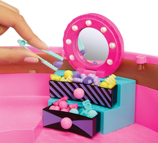 Voor de ultieme plek om je L.O.L. Surprise! Poppen te stijlen en hen een geweldige haar make-over te geven, breng je ze naar de L.O.L. Surprise! Hair Beads™ Salon. Ontdek wat er allemaal in deze salon speelset zit, inclusief een L.O.L. Surprise Hair Beads pop, 100 kralen om de kapsels van je pop te customizen, haarelastiekjes die je echt kunt gebruiken, spiegels voor jou en je poppen en nog meer verrassingen! Met dit nieuwe speelmateriaal kun je zelf gepersonaliseerde haarstijlen met kralen maken voor je poppen, door alleen kralen en water te gebruiken! De meegeleverde pop is klaar om haar nieuwe kapsel te showen dat jij hebt ontworpen! Maak het haar van de pop vochtig, voeg de kralen toe, en spray met water om de kralen op hun plek vast te plakken. Zo creëer je een kleurrijk en uniek kapsel voor je pop! Je kunt het steeds opnieuw doen wanneer je een nieuw kapsel wilt proberen. En daarna kun je je poppen laten schitteren op de catwalk! Met de L.O.L. Surprise! Hair Beads Salon creëer je de ultieme haar dag voor al je vrienden!