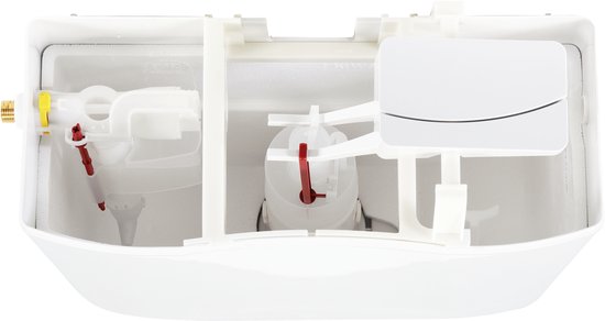 - laat eerst het overgebleven water weglopen door de knop in te drukken van de spoeling.