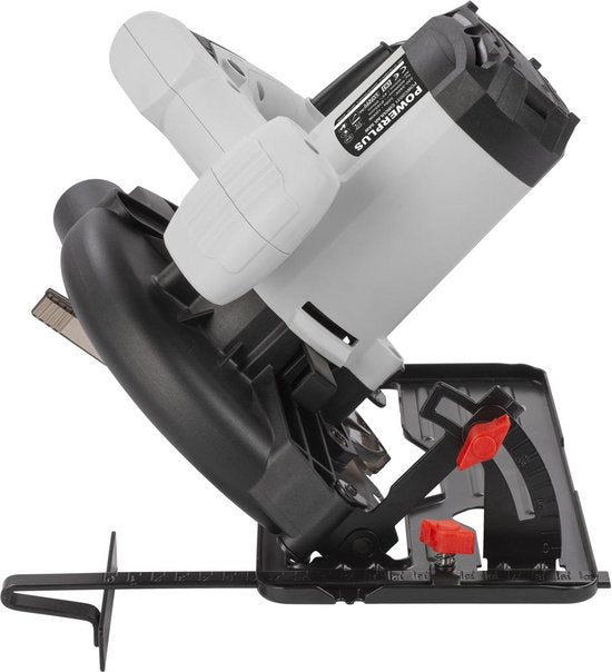 Verstelbare voet: De verstelbare voet kan je zonder gereedschap aanpassen om ook makkelijk in verstek te zagen (45° - 90°). Je hebt daarbij een maximale zaagdiepte van 62 mm bij 90° en van 48 mm bij 45°.