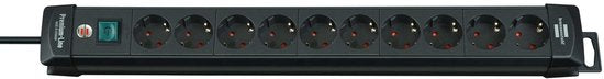 \n Stabiele, eenvoudige compacte lijsten van zeer breuk vaste speciale kunststof Verdeeldoos met verlichte veiligheidsschakelaar voor in- en uitschakelen (tweepolig) Stekkerblok met ophangsysteem voor wandmontage en praktische kabelopname Inhoud: 1 x Premium-line stekkerdoos 10-voudig in de kleur zwart – in goede kwaliteit van brennenstuhl®"