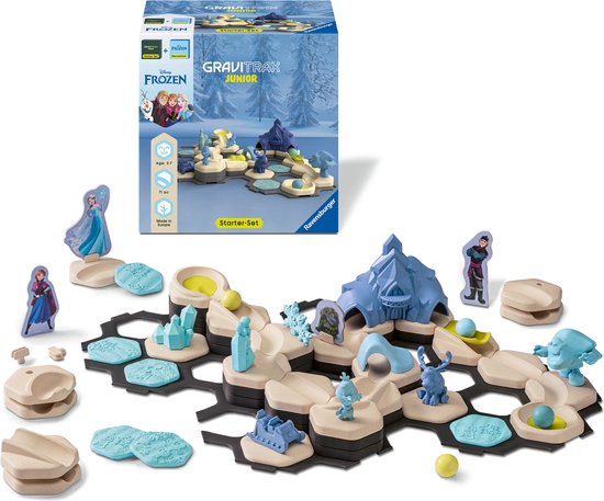 Winterse Thema's: De Frozen Bundel voegt een uniek, winterse twist toe aan de klassieke GraviTrax-ervaring. Met sneeuwvlokken, ijsblauwe onderdelen en speciale thema-elementen kunnen kinderen een betoverende knikkerbaan bouwen die past bij de wereld van hun favoriete winterverhalen.