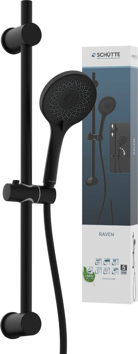 SCHÜTTE RAVEN Doucheset met Handdouche - 70 cm Glijstang - 3 standen - Mat Zwart