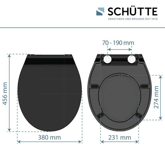 SCHÜTTE WC-Bril 82710 SLIM BLACK - Duroplast - Super Dun - Soft Close - Afklikbaar - RVS-Scharnieren - Belastbaar tot 175 kg - Gelakt - Zwart Mat