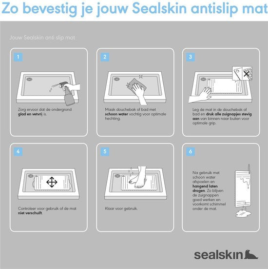 Stap veilig in en uit jouw doucheruimte met de Sealskin Rotondo veiligheidsmat. Deze antislipmat is uitgerust met een bollenstructuur aan de bovenzijde en zuignappen aan de onderzijde zodat je deze stevig in je douche kunt bevestigen om uitglijden te voorkomen. Zo creëer je een veilig en gerust gevoel in jouw badkamer. Deze witte rubberen antislipmat heeft een diameter van 55 cm die door zijn ronde vormen een subtiele uitstraling heeft. De mat kan eenvoudig met de hand gereinigd worden maar mag zelfs op een 30 graden fijnwasprogramma in je wasmachine. De veiligheidsmatten van Sealskin zijn verkrijgbaar in verschillende stijlen en kleuren, er is er dus altijd één die perfect in jouw badkamer past.