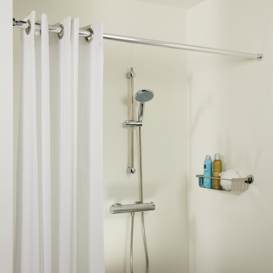 De Sealskin klemstang is ideaal voor wanneer je liever niet in je badkamertegels boort. Deze stang kan namelijk eenvoudig tussen de douchewanden worden geklemd. Met een minimale lengte van 125 cm, een maximale lengte van 220 cm en een doorsnede van 28 mm is deze stang geschikt voor vrijwel alle soorten douchegordijnringen. De stang is gemaakt van RVS en uitgevoerd in de kleur chroom.