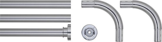 Een douchegordijn ophangen was nog nooit zo makkelijk. Deze praktische combiset van Sealskin in de kleur chroom bevat alle benodigde onderdelen voor het ophangen van een douchegordijn. De set bestaat uit 3 stangen van RVS en 2 koppelstukken. Dankzij de koppelstukken met een doorsnede van 28 mm creëer je met gemak verschillende opstellingen rondom bad en douche.