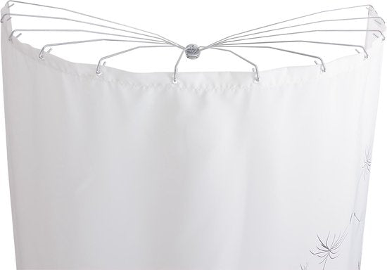 Het Sealskin Umbrella ophangsysteem van Sealskin is de ideale oplossing voor het ophangen van een douchegordijn wanneer er beperkte ruimte is in je badkamer. Je kunt bijvoorbeeld een douchecabine creëren in je badkuip zodat je kunt genieten van een ontspannende douche zonder dat heel je badkamer wordt nat gespetterd. Maar zelfs in de normale doucheruimte is dit ophangsysteem in de kleur chroom een goed alternatief voor de klassieke douchegordijnstang vanwege het kleine oppervlak: wanneer deze niet in gebruik is, kan hij eenvoudig en ruimtebesparend opzij worden gedraaid. De schroeven en pluggen voor een veilige wandmontage zijn inbegrepen. De 12 stangen bieden ondersteuning voor een douchegordijn met een breedte van 180 cm.