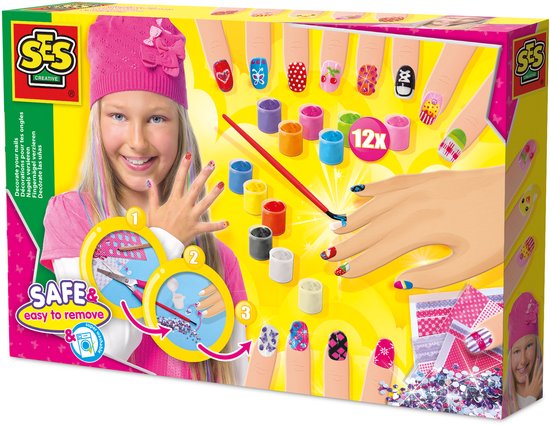 Creëer je eigen glamoureuze nagels met de Nagels Versieren set van SES Creative! Met 12 kleuren veilige nagellak op waterbasis en schitterende glittersteentjes kun je eindeloos variëren en je eigen stijl ontdekken. Perfect voor jonge stylisten die dol zijn op glitter, kleur en creativiteit.