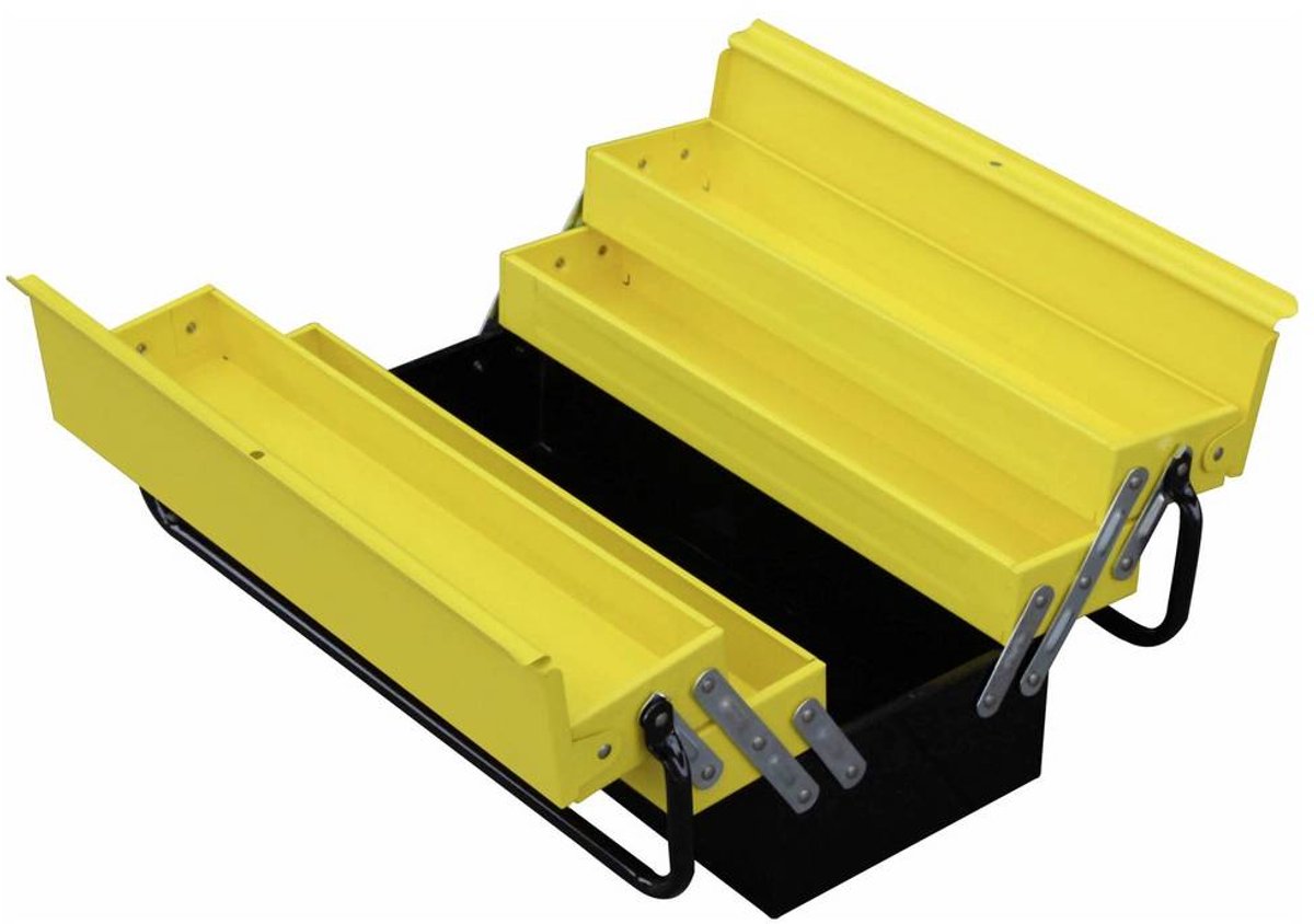 De gereedschapskoffer is voorzien van 5 laden, ideaal om allerlei gereedschap netjes en veilig op te bergen. Daarnaast is de gereedschapskoffer voorzien van 2 grote handgrepen, die betrouwbaarheid tijdens transport garanderen. Deze gereedschapskoffer is vervaardigd uit metaal en garandeert een professionele en stevige kwaliteit.