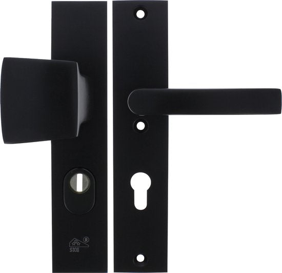 Starx Veiligheidsbeslag met Kerntrekbeveiliging – Deurbeslag Zwart – Duwer/Kruk – Langschild PC72 mm