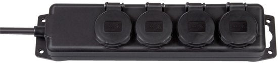 Stopcontactverdeler IP44 4-voudig zwart 2m H07RN-F 3G1,5