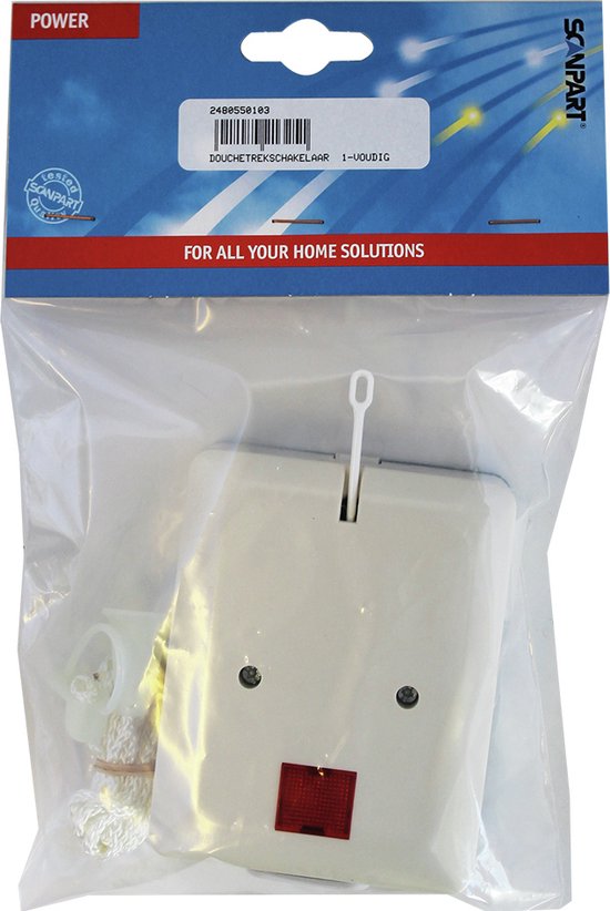 Douchetrekschakelaar 1-voudigScanpart enkelvoudige trekschakelaar. Wordt vaak gebruikt in de badkamer of doucheruimte.