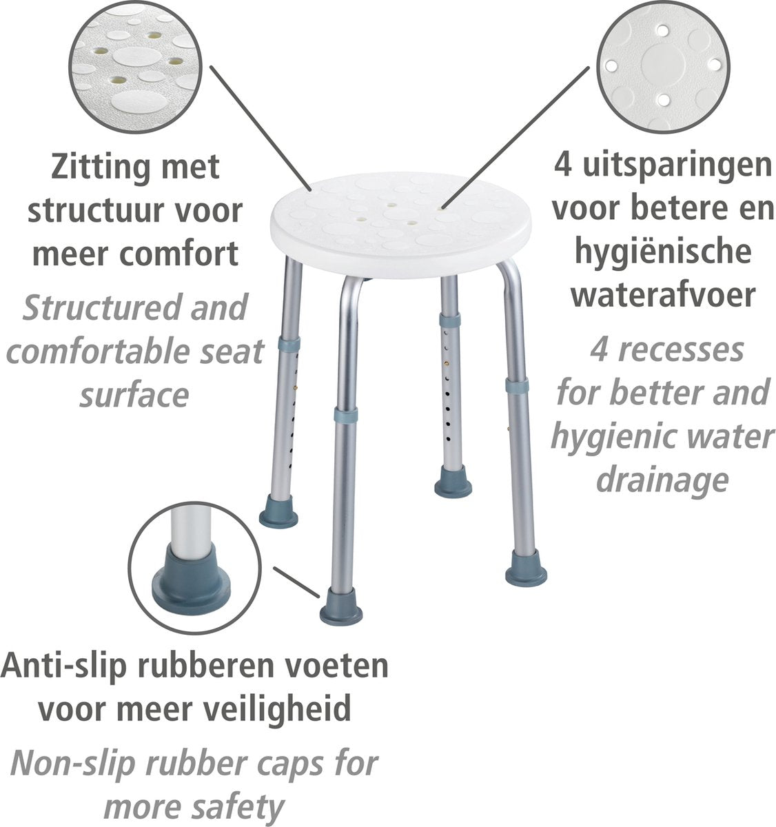 WENKO Douchekruk Secura in hoogte verstelbaar - Douchezitje - Douchestoel - Belastbaarheid max. 120 kg