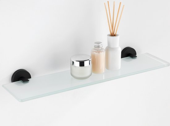 Het hoogwaardige glazen planchet Bosio van gesatineerd glas in een zware, massieve kwaliteit is ideaal tussen spiegel en wastafel. Het planchet biedt veel ruimte om badspullen, waslotion, zeepdispenser e.d. of leuke decoratie-items neer te zetten. De 2 stijlvolle wandsteunen zijn gemaakt van mat zwart rvs.