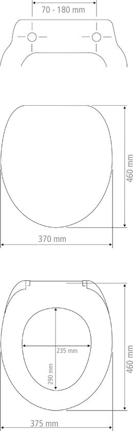 De afmetingen van de wc bril (B x D) zijn als volgt, zie ook de afbeeldingen: