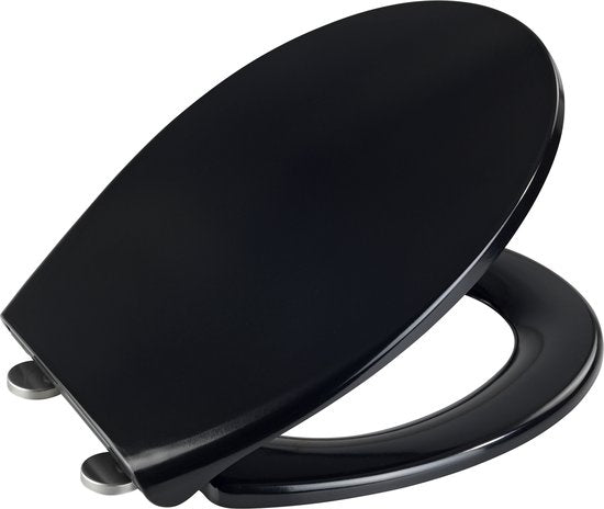 De solide toiletbril is gemaakt van antibacterieel Duroplast in zwart, dat gemakkelijk te reinigen is.