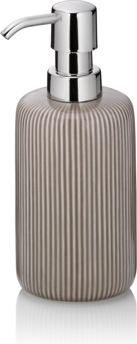 De Ava zeepdispenser van Kela is gemaakt van keramiek en heeft een mooi ribbel patroon. De pomp is gemaakt van verchroomd kunststof waardoor hij roestvrij is. Hij is voorzien van een speciaal mechanisme wat druppelen tegen gaat. Draai hem eenvoudig los om hem bij te kunnen vullen. Hij is 17,5 cm hoog en heeft een diametr van 7,5 cm. Daarnaast heeft hij een inhoud van 350 ml. Leuk om te combineren met andere items uit dezelfde serie.